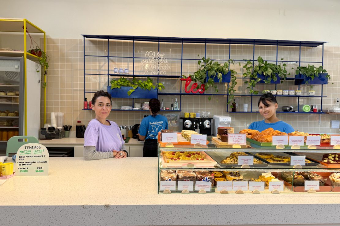 Martina Sánchez Acosta celebra una nueva mudanza y la apertura de ‘Teo’ en un lugar más amplio, con una enorme sala de producción con vista al público, un mostrador cargado de delicias dulces (y saldas) y amplios espacios para sentarse a tomar un café y disfrutar de una deliciosa torta. Pasás por la caja y te llevan el pedido a la mesa. El lugar es super luminoso, súper colorido. con una paleta de colores que acompaña la identidad del proyecto. Hay mesitas adentro, en el patio rodeado de verde y en la vereda.