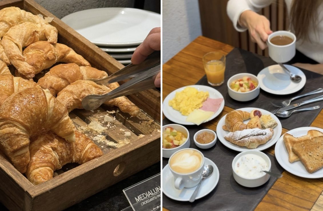El Land Plaza ofrece desayuno libre para los huéspedes y para el público en general. Se sirve todos los días del año entre las 06.30 y las 10.30 de la mañana. En el buffet vas a encontrar de todo, realmente, entre dulce y salado: medialunas, facturas, alfajores, cookies, budines, brownies. También hay quesos, fiambres, huevo revuelto y panes. Quienes buscan opciones saludables hay frutas frescas, yogures, ensalada de frutas, y por supuesto cereales. Los fines de semana (cuando el hotel tiene máxima capacidad) se hacen pancakes y waffles en el momento.