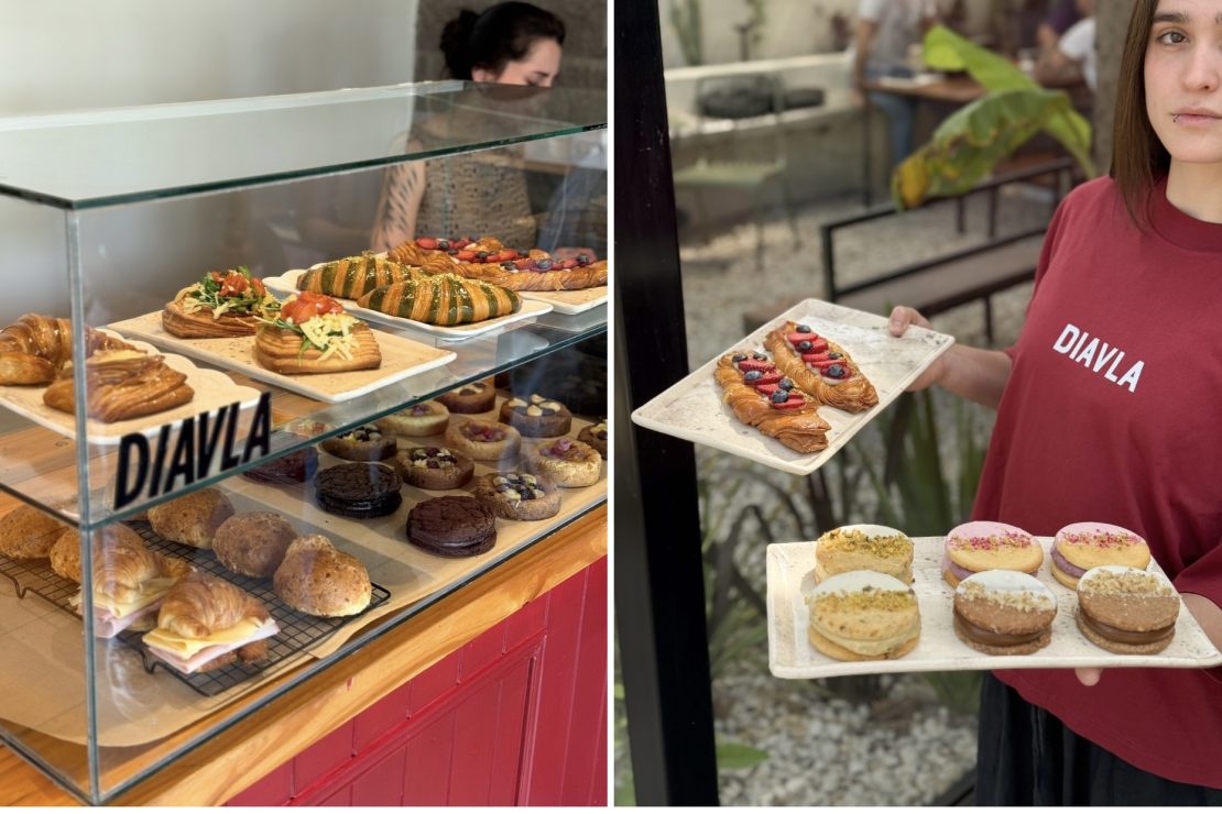 Diavla llegó para sumarse a la movida gastronómica barrial. Esta noche habrá pizzas de La Esquinita y vinitos de Wine Glass, dos proyectos de la zona. “Para mí, Diavla es un café que combina lo cotidiano del barrio con una estética sensual y rebelde. Es un espacio donde lo simple se vuelve especial. Puede parecer que somos una cafetería más, pero no”, define la joven.
