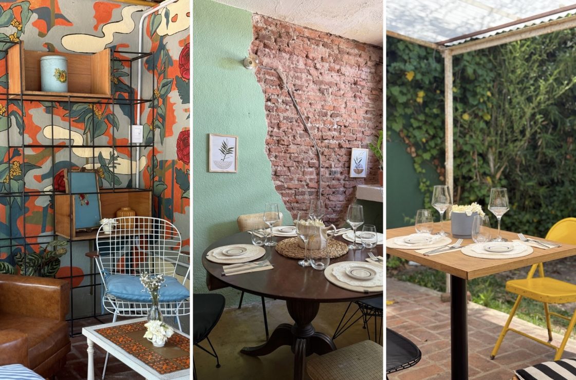 Estar en este lugar es sentirse como en casa. La familiaridad se transmite desde el umbral. Un cartel enorme transmite el concepto del lugar: “Tenemos todo menos gluten”. Una mesitas coloridas en el jardín representa la antesala a lo que será la casa. Una experiencia íntima, un lugar de encuentro donde se entrelazan la cultura colectiva, la gastronomía y la amistad.