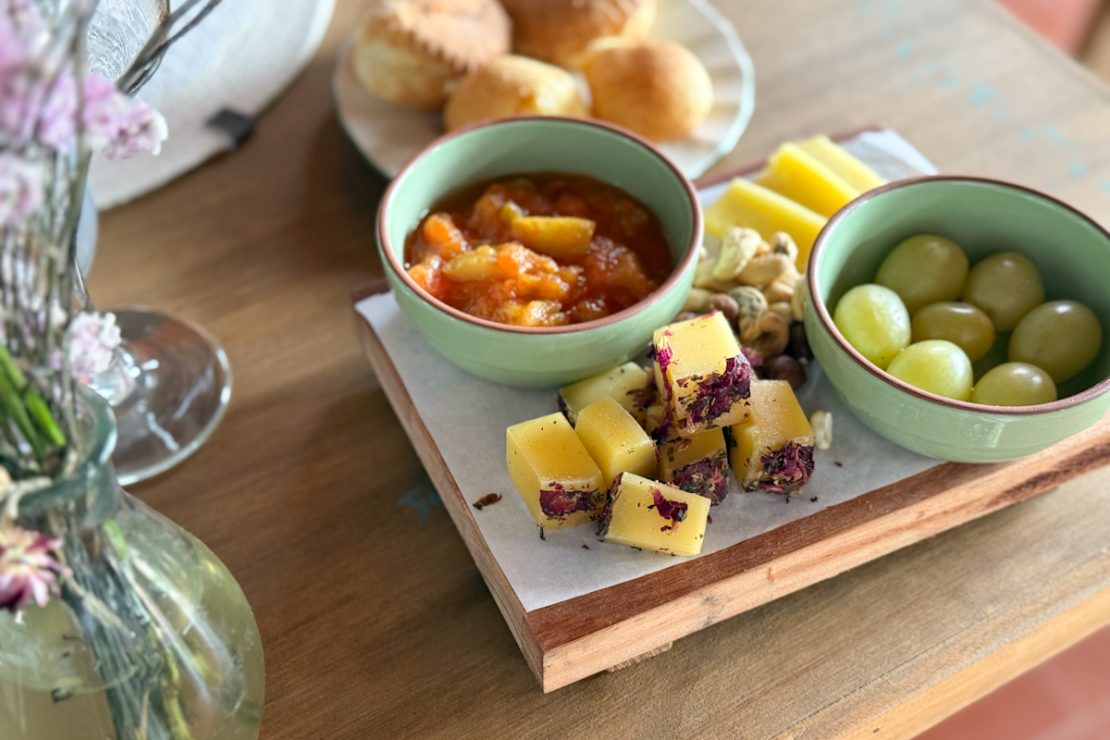 La panera viene con quesos El Abascay y conservas preparadas por la chef.