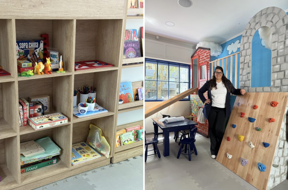 Al entrar, un recibidor que anticipa lo que vendrá. El lugar se divide para ofrecer distintas experiencias: a la izquierda, el salón de juegos, un paraíso para los más chicos; a la derecha, el salón comedor, un ambiente cálido que invita a disfrutar de la comida.