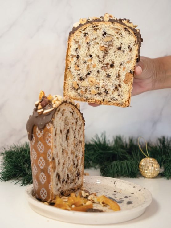 La panadería panadería gluten free y vegana de Agustín Dapoto lanzó para estas Fiestas dos versiones de panes dulces: El clásico relleno con almendras, nueces, castañas de cajú, pasas al vermouth e higos, y el de Chocolate Aguila y nueces tostadas. Vienen en 2 presentaciones: 350 gramos y 800 gramos. Son 100% libre de gluten y a base de plantas.
