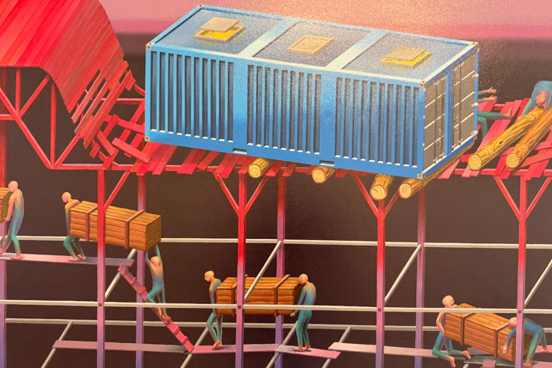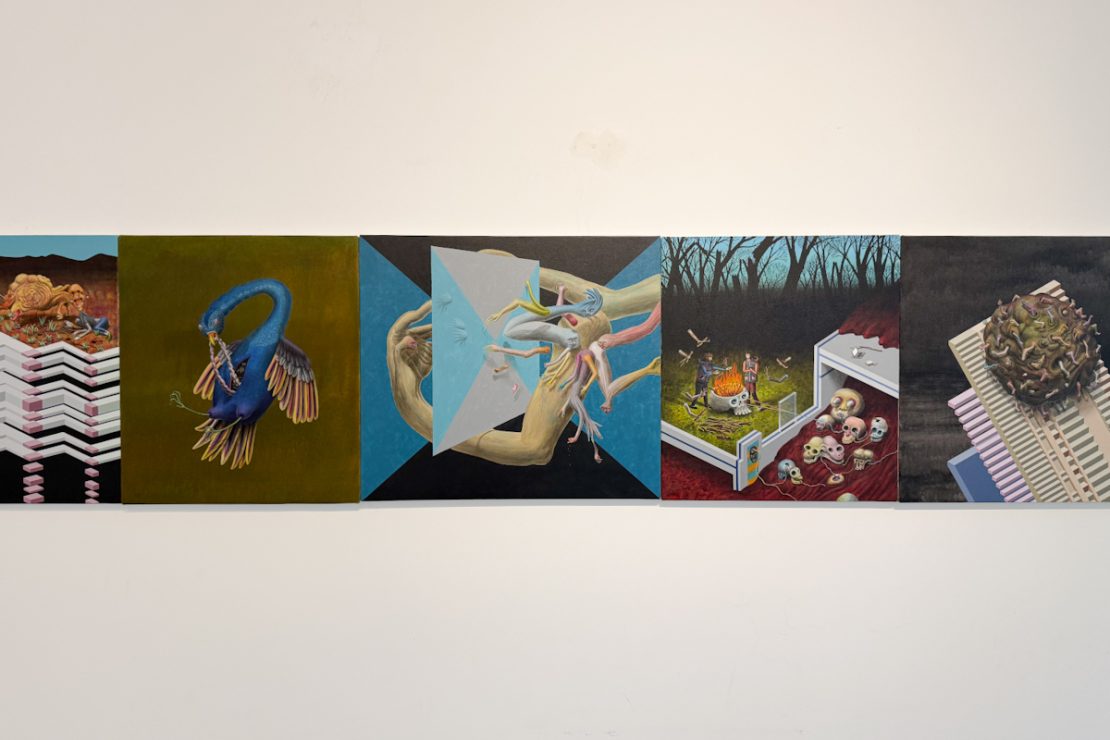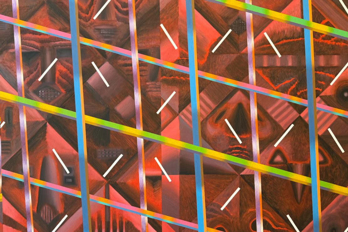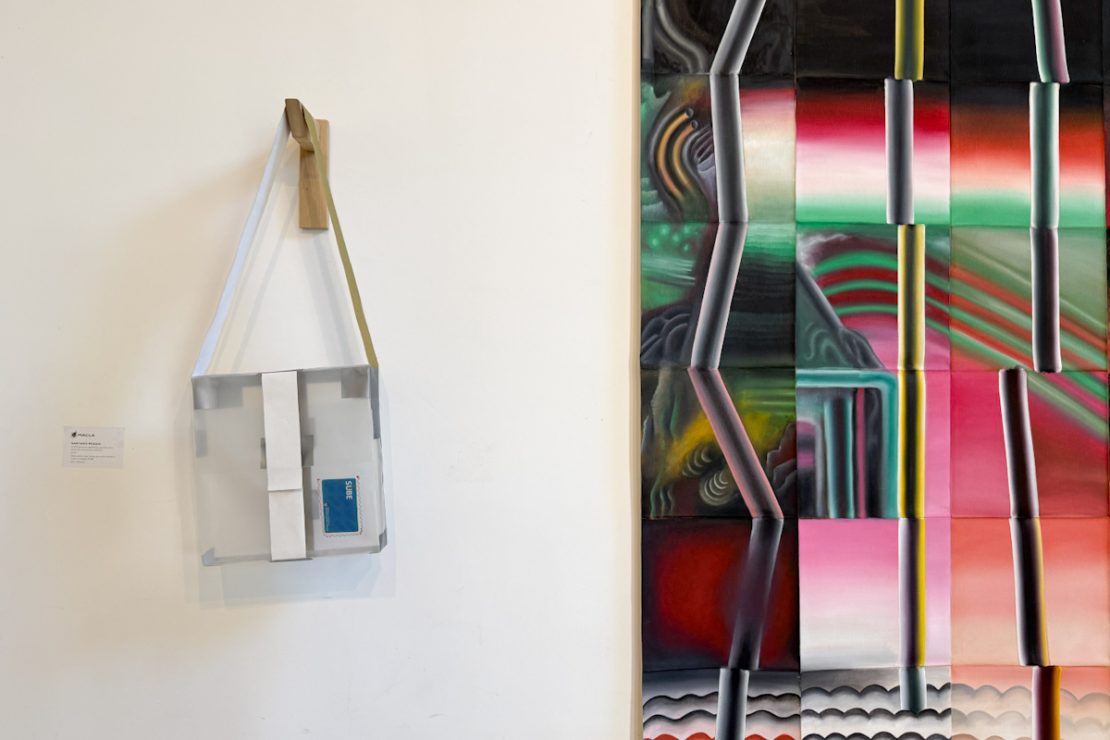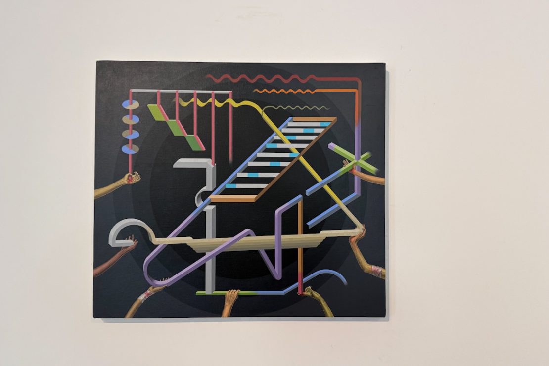 El mundo es ficción y Santiago Poggio lo reimagina a partir de los sentido. En palabras de Poggio, la pintura actúa como “herramienta para reflexionar sobre el mundo, desplegar planteos filosóficos y crear pensamiento”. Un texto de Joaquín Almeida que acompaña la muestra profundiza en este enfoque al señalar que “la geometría es parte de la vida, ordena nuestro espacio y cuerpo situado, permitiendo una lectura también política”.