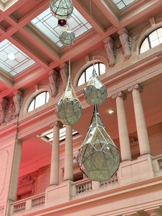 En el hall central, el artista Sergio San Martín volvió a instalar su obra llamada “Gotas de agua”. Son seis gotas gigantes de metal y vidrio reciclado que penden del techo en el ala central que busca generar conciencia sobre la importancia del agua. Dicha obra estuvo durante varios años en el lugar y ahora el artista logró restaurarlas.