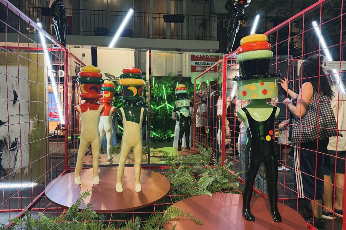 En La Compañía, Renata Schussheim exhibió “Nadadoras”, esculturas realizadas con tecnología 3D que parecen flotar bajo el agua: arte, fantasía y tecnología se funden en una puesta poética. Agüero Iluminación + Marcos López fue “una dupla brillante” en La Noche del Diseño. El artista intervino fotografías antiguas de celebraciones y fiestas, reescribiendo la memoria desde el color y la ironía. Cartapesta se instaló en Tolder y resignificó el descarte textil en una escenografía artesanal; y Clara de Estrada y Leticia & Federico Churba unieron fotografía, cerámica y proyección en una intervención que transforma la Rue des Artisans.