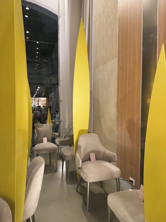 Por su parte, Fontenla invitó a un recorrido visual e inmersivo por la evolución del diseño de interiores. La firma fue anfitriona de la impactante instalación “10 Años de Distrito Arenales: Una Evolución del Diseño”, creada en colaboración con el reconocido artista Eric Franco y sus esculturas de hierro que dialogan con las sillas y su evolución. La presentación, que tuvo lugar en la vidriera principal de la tienda de Arenales al 1300, fue una oda al crecimiento del distrito y la transformación de las tendencias a lo largo de una década.