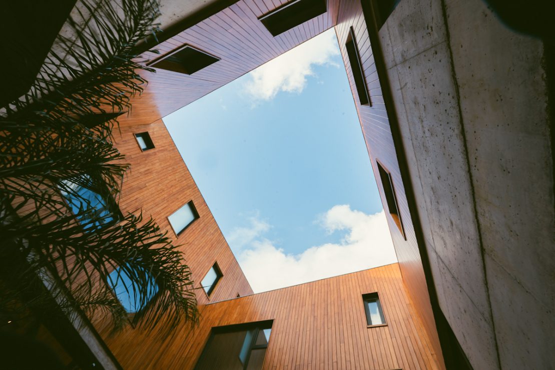 “La idea inicial no fue un hotel, sino una casa tipo refugio que imaginamos junto al mar. Una vivienda abierta a la naturaleza, donde el jardín tropical respirara en el centro y, desde cada rincón, el horizonte se dejara ver”, dicen sus dueños. Se comenzó a construir en febrero 2019. Al finalizar la estructura de hormigón, la obra reveló su carácter. Su escala, su vista al mar y su diseño inclinado inspiraron una nueva visión: convertir la vivienda en un Hotel Boutique Singular.